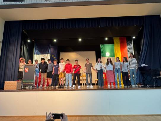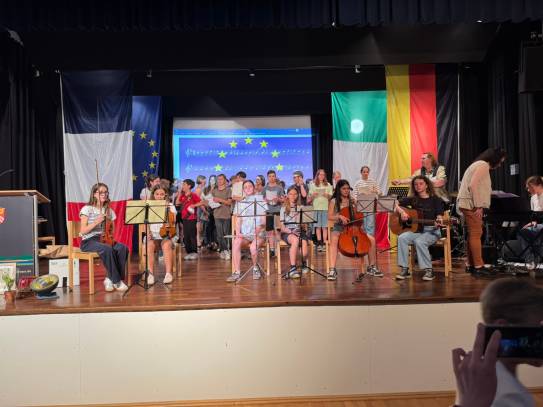 Der Festakt wurde mit zwei Darbietungen der SKG-Kindertanzgruppe, musikalisch von der Jazz-Gruppe Mahyani-Röder und von Schülern aus Saint Philbert mit einem kleinen Theaterstück umrahmt und wurde mit dem gemeinsamen Singen der Europahymne in den drei Sprachen der Partnergemeinden beendet.