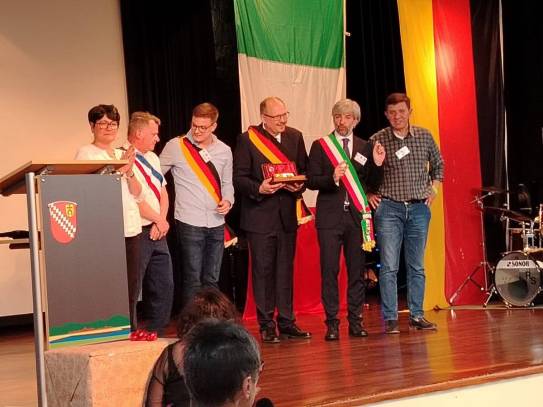 „Städtepartnerschaften sind mehr als nur feierliche Urkunden“, sie sind lebendige Brücken, gebaut aus Vertrauen, Respekt und echter Freundschaft“, lobte Hennemann das Engagement der Partnerschaftsvereine. Gerade in der fragiler werdenden weltpolitischen Lage sei die Verschwisterung ein wichtiger Fels in der DNA Europas und des Friedens. „Es sind diese kleinen großen Moment, die Europa zusammenhalten“ sagte er und erntete zustimmenden Applaus. Sein besonderer Dank ging an die Gäste aus Tricarico, die die lange Reise auf sich nahmen, um dieses Jubiläum gemeinsam zu feiern. „Lassen Sie uns diesen Tag nutzen, die Vergangenheit zu würdigen und mit Zuversicht in die Zukunft zu blicken“.