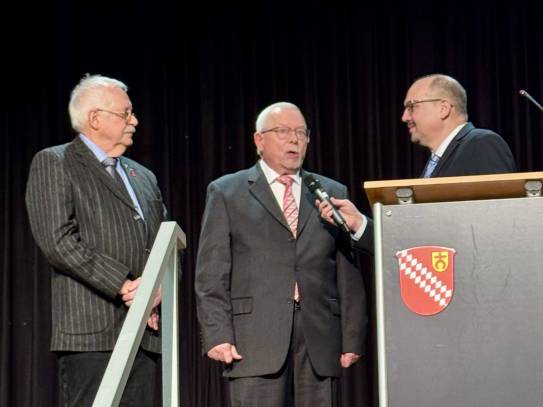 Für ihr jahrzehntelanges kommunales und ehrenamtliches Engagement zeichnete die Gemeinde Rolf Geiger und Wieland Keller aus. Beide erhielten den Titel „Ehrengemeindeschiedsmann“ für ihr langjähriges Wirken als Schiedspersonen. Bürgermeister Hennemann würdigte dies mit den Worten: „In der Mediation der unterschiedlichen Wahrnehmungen der nachbarschaftlichen Belange liegt die hohe Kunst der Schiedsämter.“